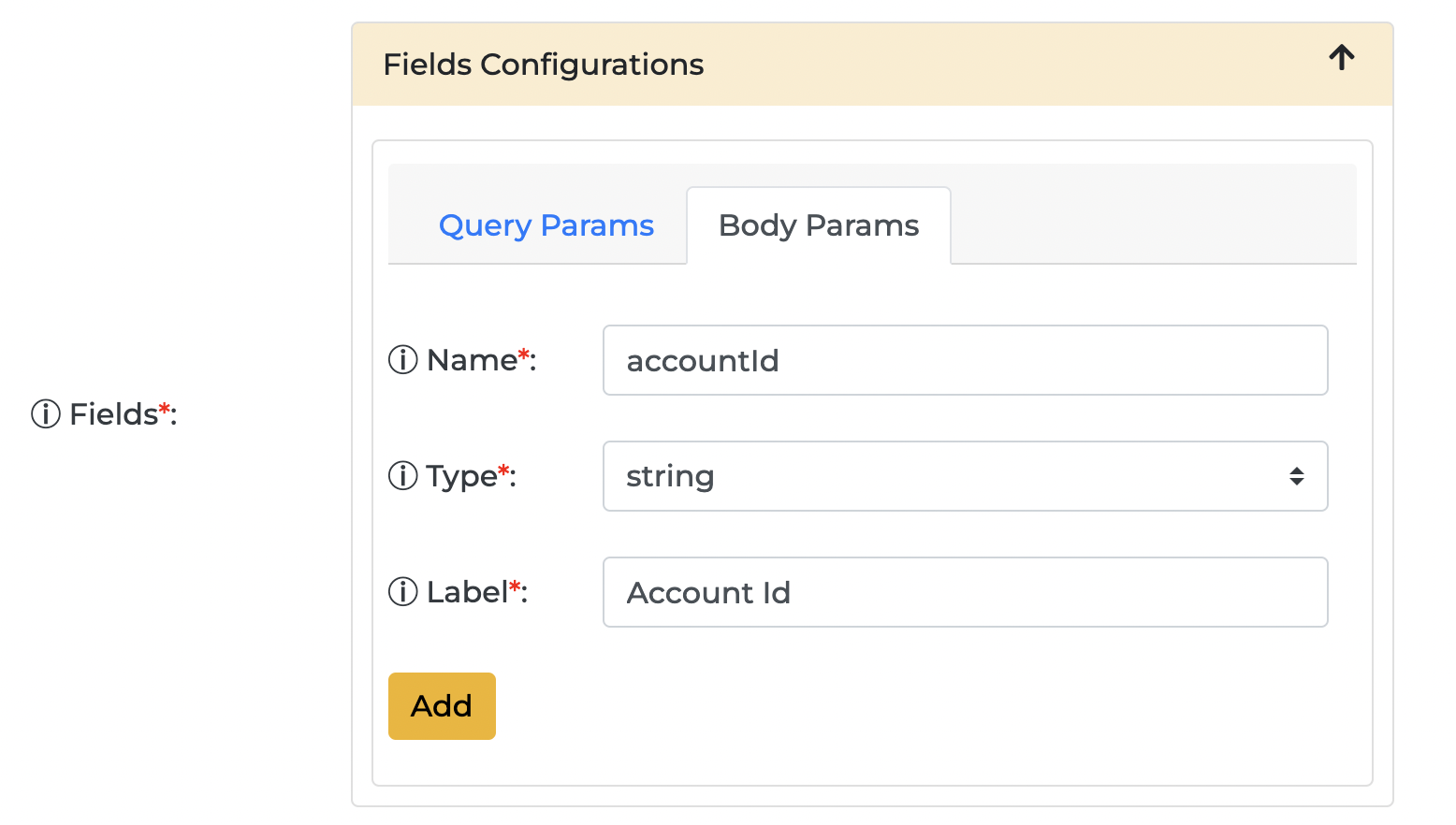 Upon selecting HTTP method, `fields` configuration section appears where the organizer has to configure API request body or query params fields. The Fyre server will take participants inputs in its UI and populates these fields while making the API call to the 3rd party app's server.&#x20;