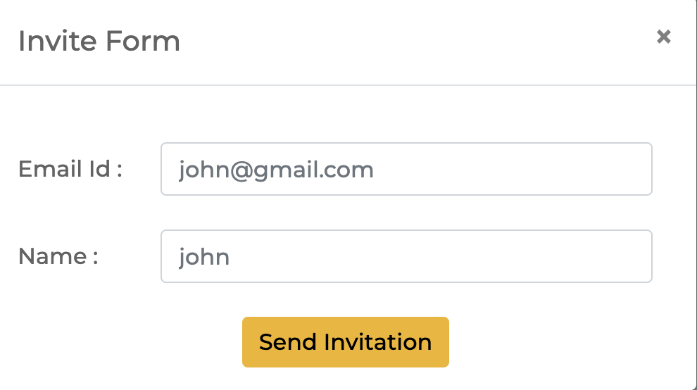 Once you click on Invite, you will have to enter the name and email ID of the team member you want to invite.&#x20;